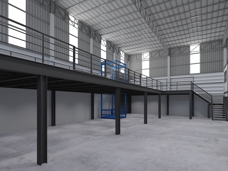 ชั้นลอยในคลังสินค้าพร้อมระบบรองรับชั้นวาง